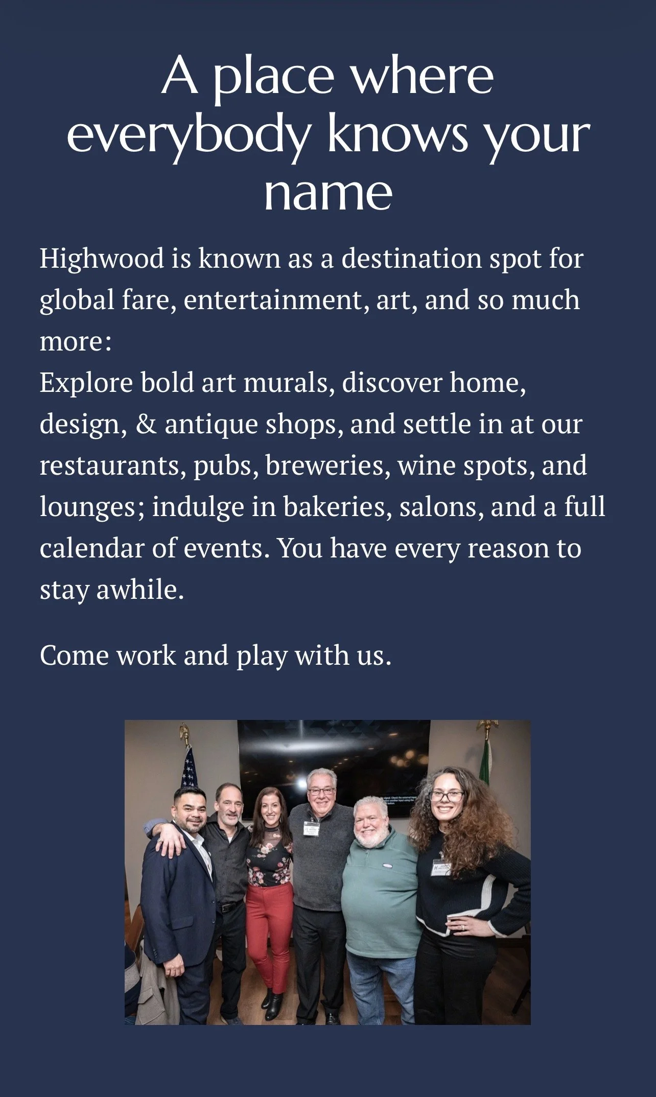 client had the unique opportunity to create a fresh, new website and wanted the copy, imagery and overall feel to accurately convey the vibe of their city, nestled within larger suburbs of chicago’s north shore. the city’s vibe is friendly, casual, entertaining, historic, and known as the restaurant mecca of the north shore; the board wanted the new site to express these elements